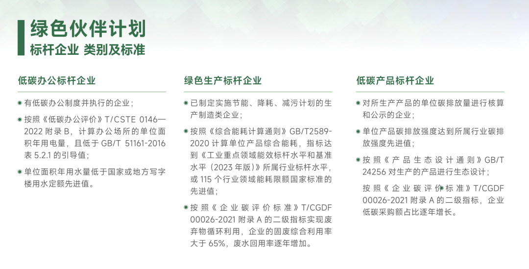 “绿色伙伴”计划标杆企业3类标准