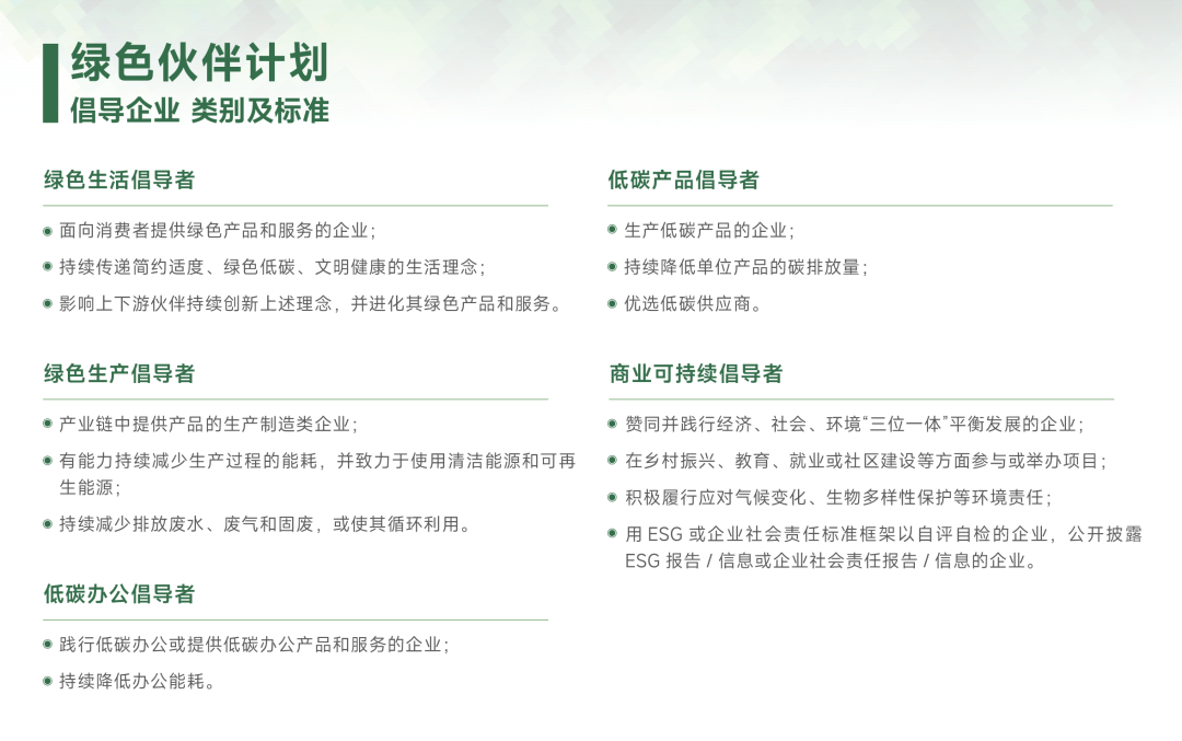 “绿色伙伴”计划倡导企业5类标准