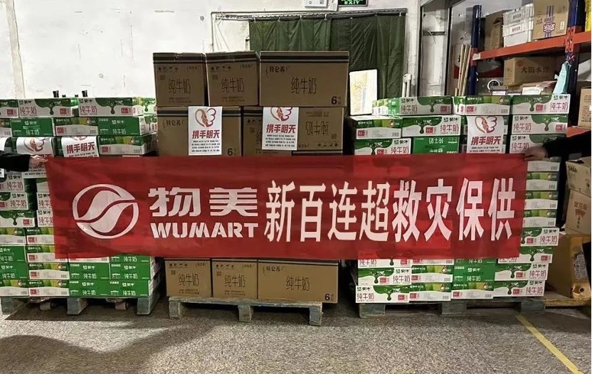 甘肃灾情发生后,物美集团迅速响应,第一时间成立抗震救灾专项小组,积极参与到抗震救灾当中。集团协调银川新百连超和北京物美超市,调动大量救灾物资,以最快的速度发往灾区。截至12月19日18时,物美第一批200万元物资已装车发出,这些物资包括自热米饭、面包、牛奶、油、卫生纸、棉被、毛巾、牙刷、消毒液、暖宝宝、整理箱等生活必需品,为灾区人民提供实实在在的帮助。