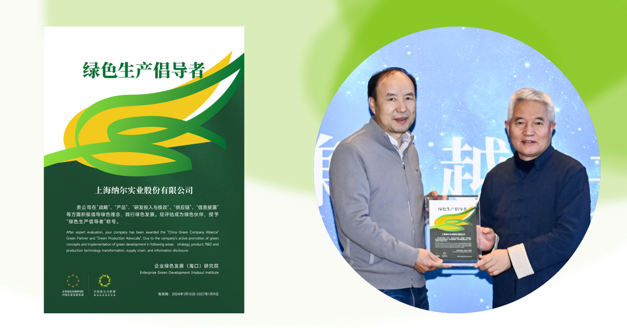 2023年末,绿研院“绿色伙伴”计划正式启动,经过充分的调研评估流程,上海纳尔实业股份有限公司成为首个“绿色生产倡导者”。